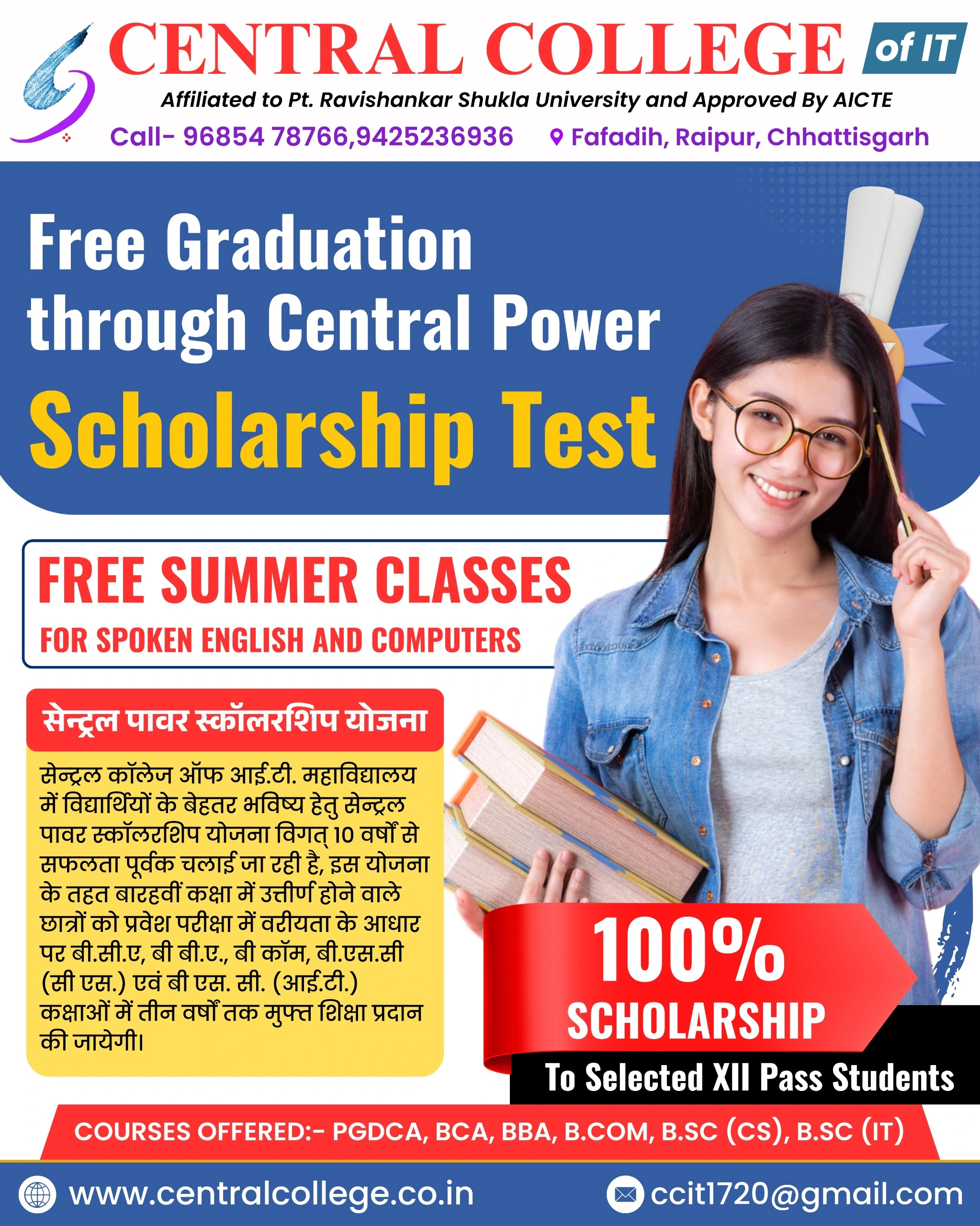 Central college visualizes Chattisgarh as a "valley of thoughts and Properity"backed with enriched natural and mineral resource,strong industrial and power sector,excellent educational institution and much more.There always lies a scope for betterment and advancement.Today,the market is moving towards AI.It's the world of comminication where technology,accuracy,reliability and promptness matters a lot.